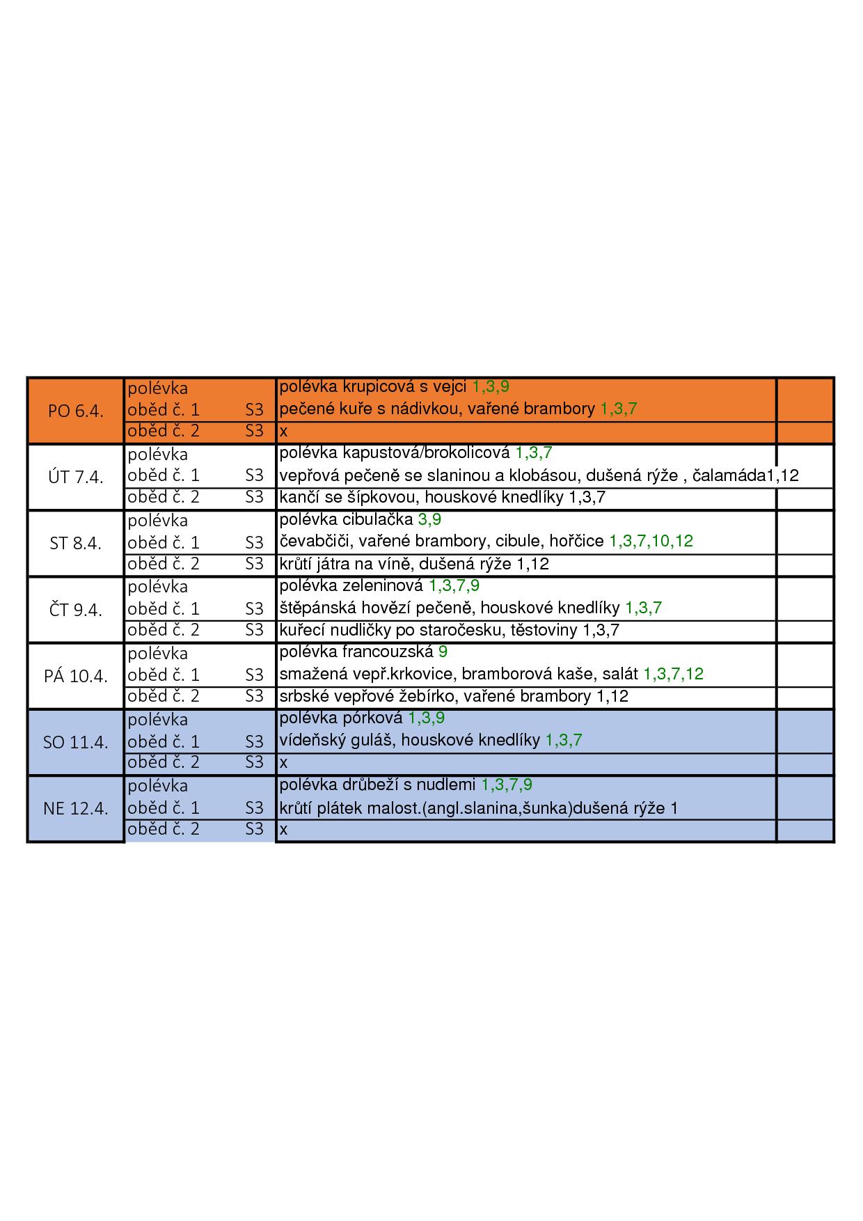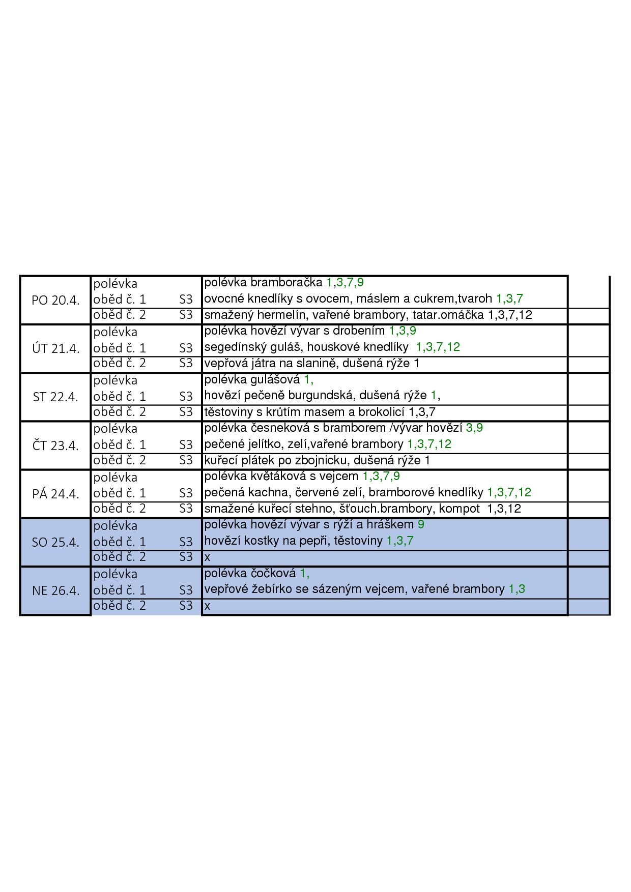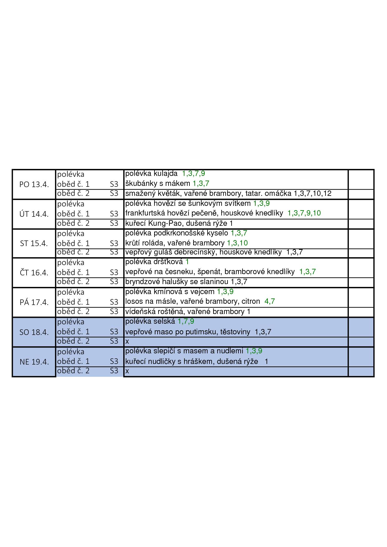 Obědy jsou poskytovány 7 dní v týdnu včetně svátků.