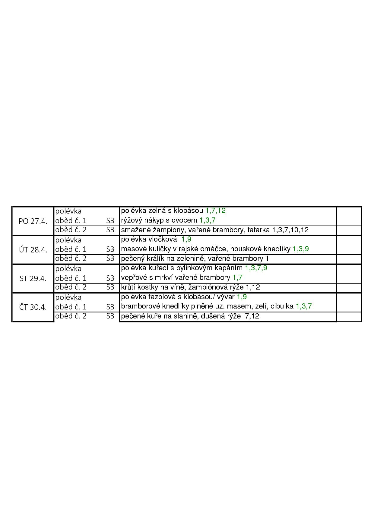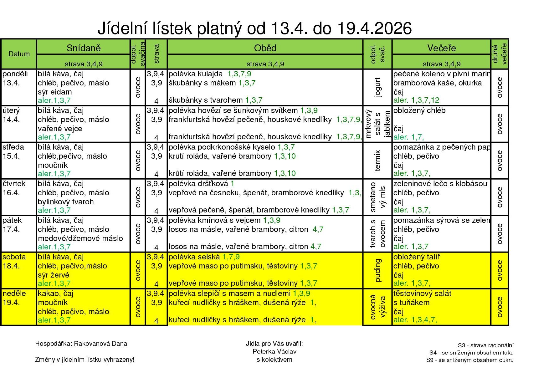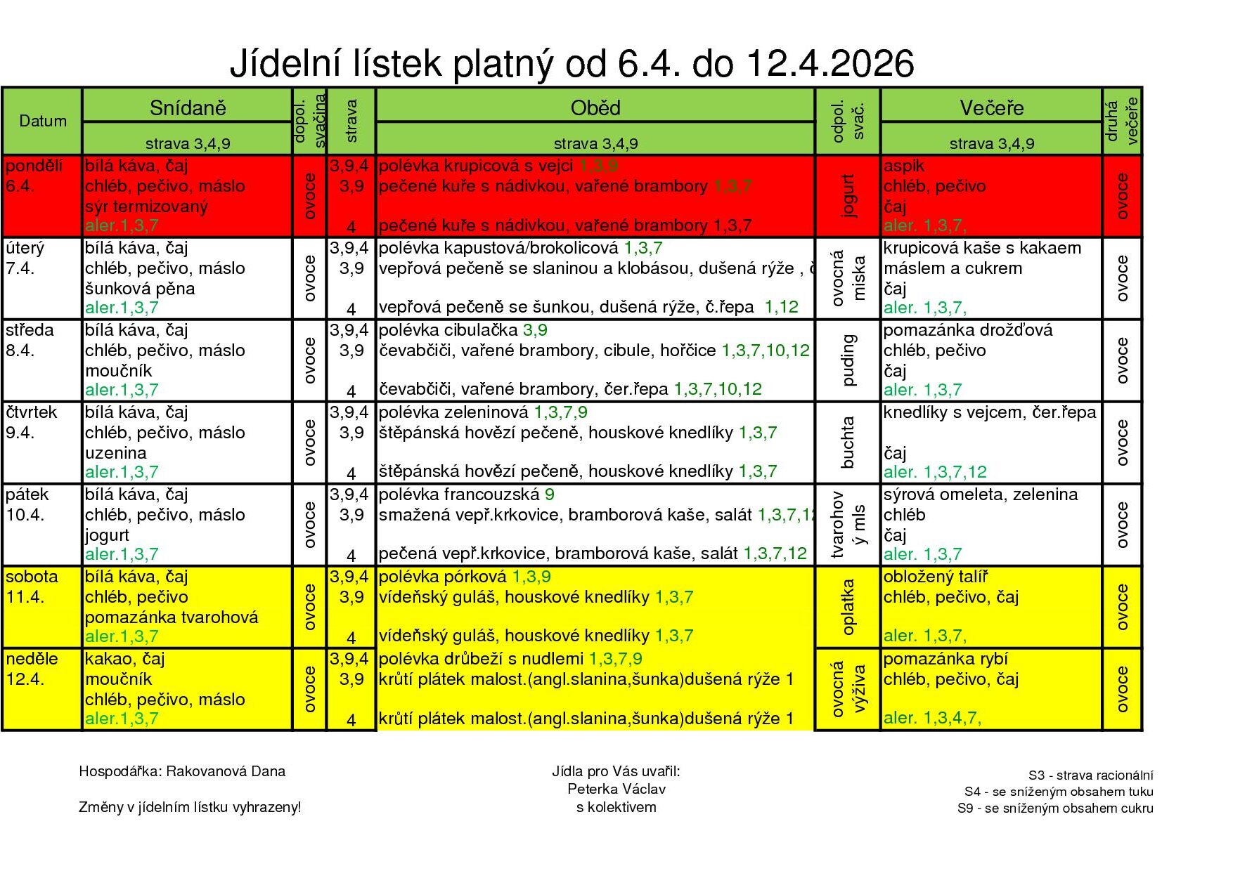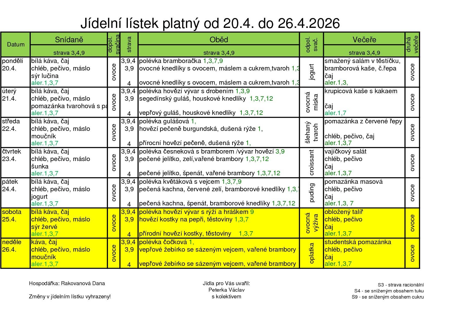 Obědy jsou poskytovány 7 dní v týdnu včetně svátků.